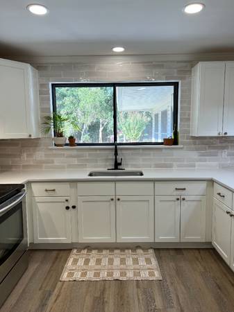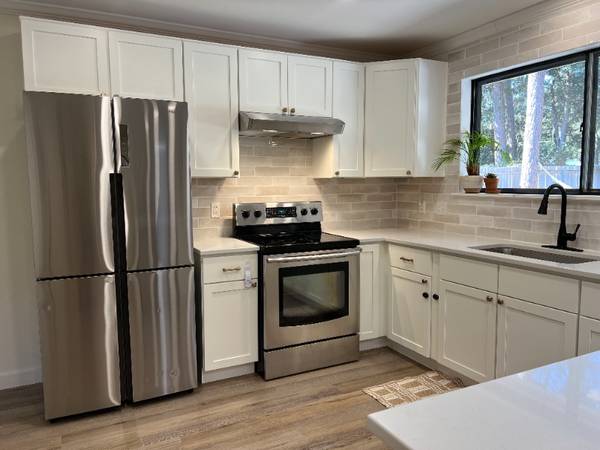 Avail. Feb 1, 2025. 12-24 month lease. Fully renovated 4-bed, 2-bath ranch home in a quiet neighborhood with cul-de-sac. Located minutes from top schools (NHS, Ruckel, Plew), 10 min to Eglin AFB & airport, shopping, parks, and 20 minutes from Destin’s beaches. This 1,907 sf home features a bright, open living area with LVP flooring, a custom kitchen with stainless steel appliances, quartz countertops, soft-close shaker cabinets, and a breakfast bar. The master suite includes French doors leading to a private patio and a luxury en-suite bathroom with a tile shower and slate flooring. The spacious Florida room has 6 windows with views of the large backyard and wooded easement. Includes one-car garage with storage cabinets and a large, locking backyard shed. Pre-wired for fiber internet. W/D hookups Tenant responsible for utilities & lawncare. Income: >3x rent. Credit score: 680+. Application, background check and credit check required for all tenants 18+. Equal Opportunity Housing.
