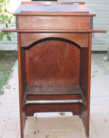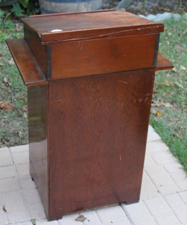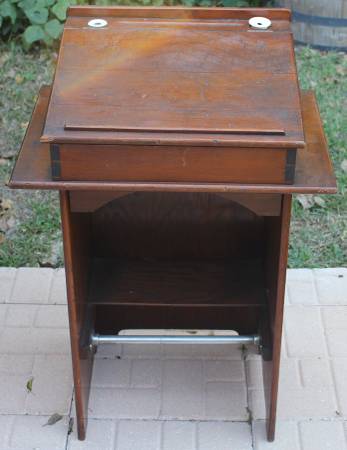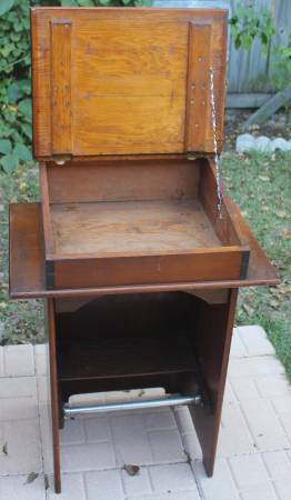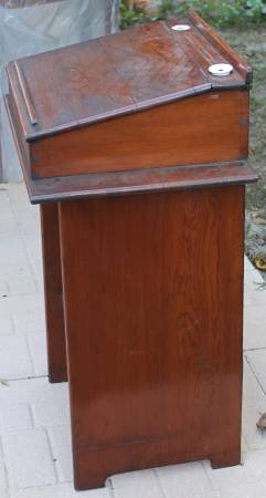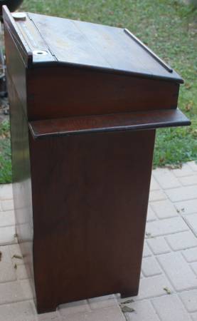 Antique Secretary / Ship Captains Desk. Circa 1840 - 1880. Solid Wood, nickel plated brass foot rest. Pen groove.