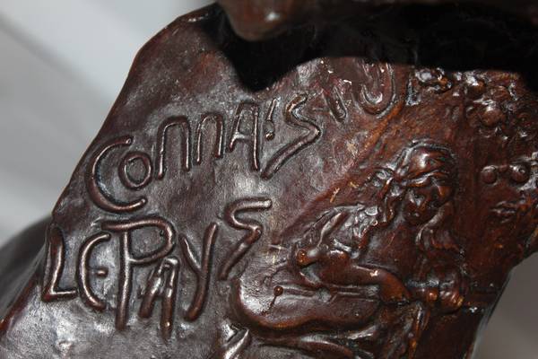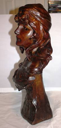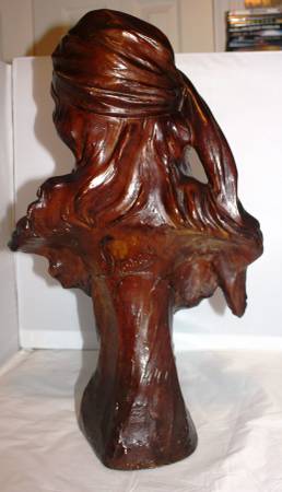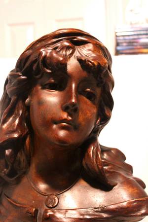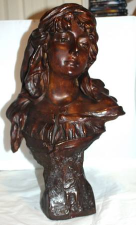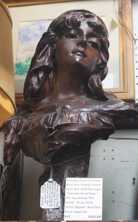 Antique French Plaster Bust of a Young French Farm Girl with the logo: "Connais-tu La Pays" (Do You Know The Land). Circa: 1910. Artist Signed. Bust has been repaired.