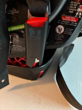 Great shape, booster seat used for maybe a year, been in the house since. Great quality, I think you could strap a kid into this thing, toss them off a roof and they'd barely get a scratch. Full disclosure, I've never dropped my kid off a roof in it, and I don't suggest you try it either, but one gets the impression that this thing could take a good hit and protect the occupant.