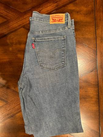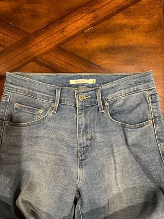 Womens Levi’s 505 Straight Jeans Faded Medium Blue Color, excellent condition, lightly worn, soft, comfortable, stretchy cotton blend, petite size 4, 28” inseam, 28.25” waist. Excellent condition,...