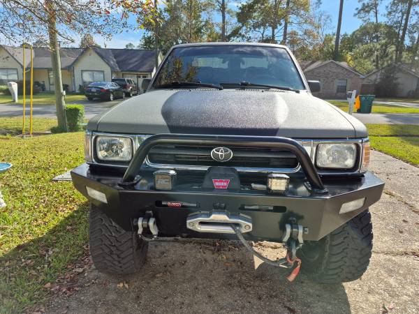 1993 Toyota 4x4, 3.2 ltr V6, 5 speed transmission. Fully Rhinohided, 20 in. tires, alloy wheels. fully upholstered cab.