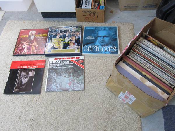 I am downsizing my record collection. I already have one box of vintage top of the line Audiophile Classical Records on Craigslist. This is the 2nd box and includes 9 Box sets(Readers Digest, London, RCA Etc) and 50 top line RCA LSC, Mercury Living Presence and London, all vintage Stereo to of line audiophile quality Classical Records, well cared for and stored inside. If someond wants to buy both boxes, I will give them a discount. These are collectable top quality vintage Stereo Classical LPs. Priced to sell. Please advise and thank you, SonnY