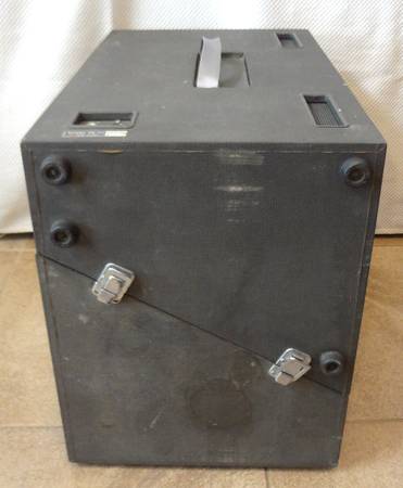 The Akai SS-70 is a pair of portable suitcase-style speakers from the mid-1960s, with approximate dimensions of 17.5 x 20 x 13.5 and a combined weight of about 28 lbs. The speakers can be interlocked for transport, feature wooden frames with marble tops and brass accents, and have 1/4" input connections. They were often sold with Akai reel-to-reel tape decks from that period.