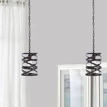 PAIR (2x) allen + roth Winship Bronze Modern/Contemporary Cylinder Mini Pendant Cable Light