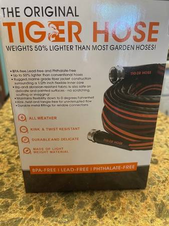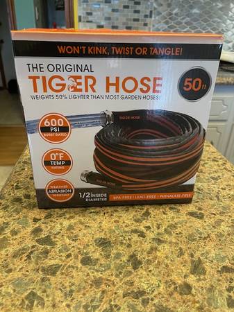 Tiger Garden Hose, unopened, new in box 50ft long. Retails for $15.99 Yours for $5 Call or Message: 850 - 9seven4 - six88zero.