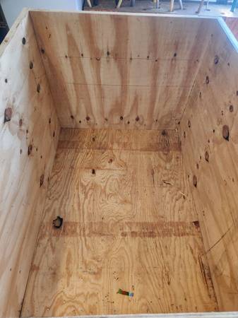 Large shipping crate for sale. $50 or make offer Well built, designed for shipping large items. Has a lid, not pictured. Interior dimensions 30 wide x 46 long x 36 high Exterior dimension 33wide x...