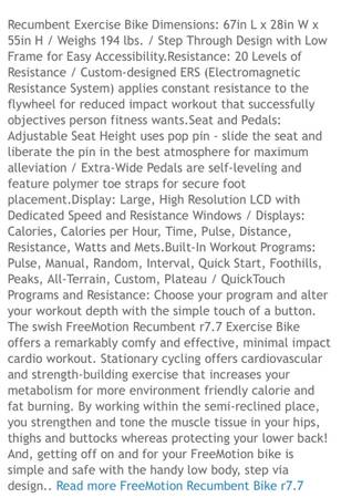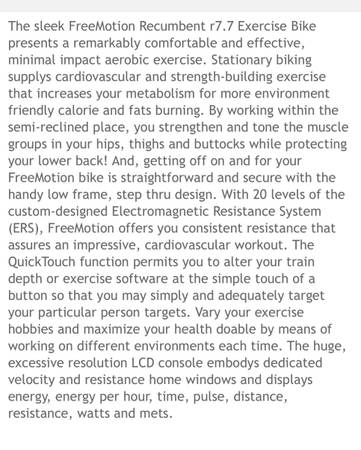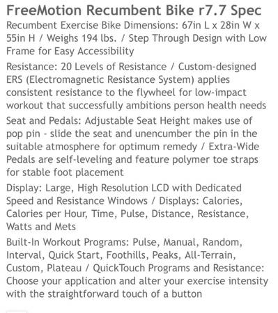 Indoor FreeMotion Recumbent Bike r7.7, exercise bike in good condition, runs great. Retail $3500, selling for $200. From a smoke free and pet free home. Accepting cash only.