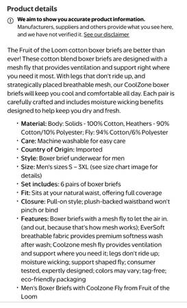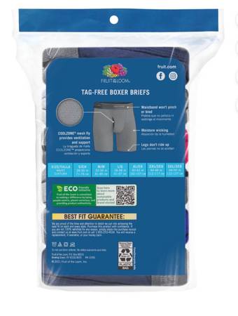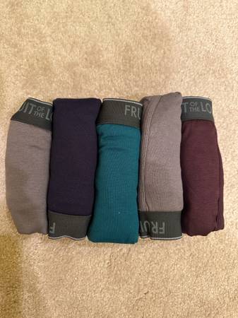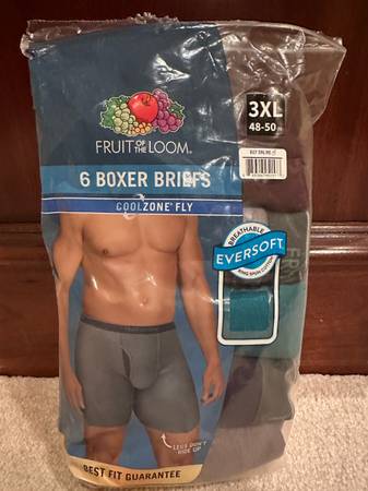 NEW Men's Fruit Of The Loom EverSoft CoolZone Boxer Briefs, Moisture-Wicking, Mesh Fly, 5 briefs inside original packaging of 6-pack, tried one but didn’t fit so it was thrown away, (colors: black, teal, plum, 2 gray), see photos for more details. Retail $20, selling $10 total for all 5 briefs.