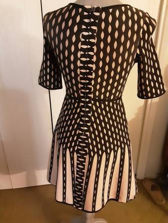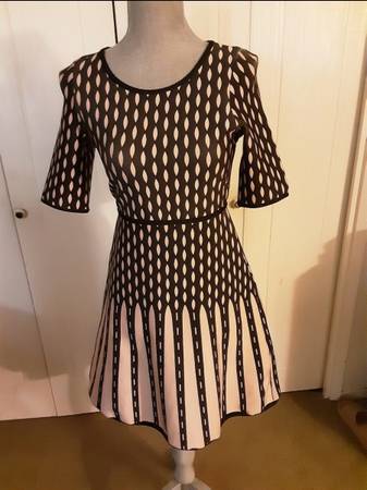 Women’s Black & Beige Dress, size petite XXS, cute designer dress with full back zipper, quality thick non-wrinkle fabric, has some stretch, can fit petite sizes XS or XXS, in excellent condition.