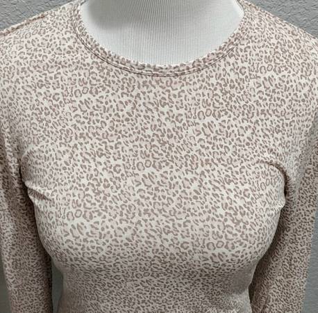 Women’s Pink Leopard print Cuddl Duds Long Sleeve Shirt, size small (fits more like a medium). One of a kind stylish classy crew neck shirt, excellent condition, gently worn. From a smoke free and...