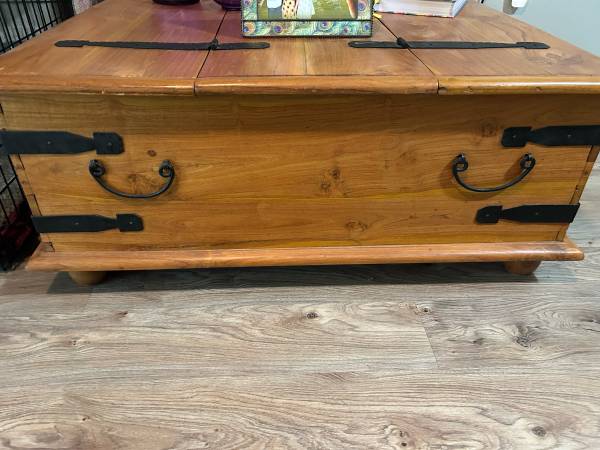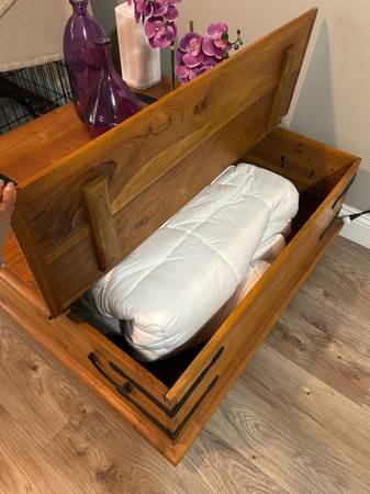 Solid wood with metal hinges and storage. Accepting cash or Venmo only. Must pick up. No delivery.
