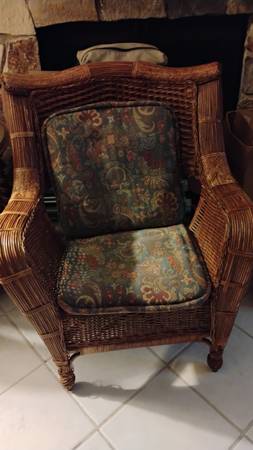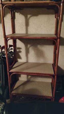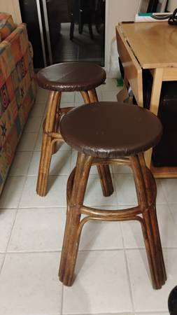 Rattan and wicker furniture. bar stools, arm chair, tall chair and shelves/book case. Stools have slip covers. $30 for all o.b.o. Can deliver locally. NO TEXTS. NO EMAILS. NO SOLICITORS. CALLS ONLY...