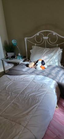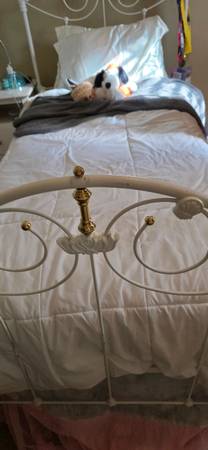 $125 Trundle Twin Solid Iron/Brass. With spring up Twin frame underneath. Solid, sturdy and in great shape.