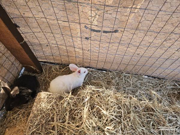 I have 8 week old bunnies available. They are Rex and flemish giant cross. $25 each text or call if interested. White is female 2 black females Red male