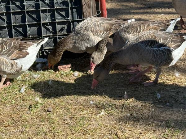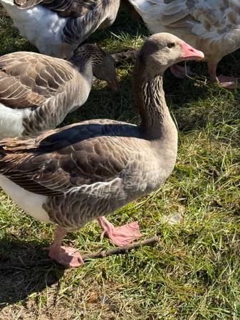 I have 4 Toulouse hens available. All 4 for 250$. Will consider trade for peahens, unused chicken wire, roofing tin, or good quality hay.