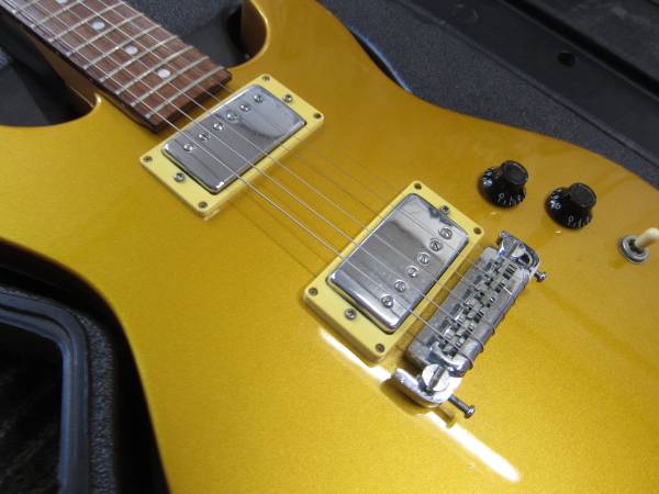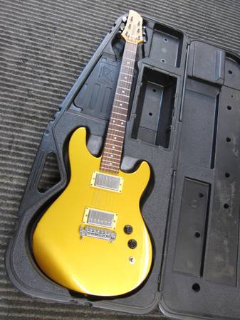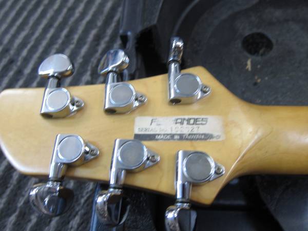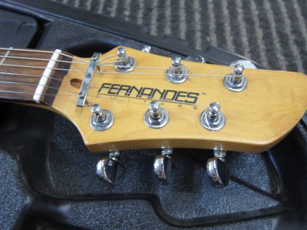 Nice quality Fernandez Gold Top Solid Body Electric guitar(strat style) with 2 humbucking pickups, closed back tuners, quality bridet with individual saddles, rosewood neck, no wear on the frets or fingerboard, some nicks and dings especially on the back( see pictures). It is made in Taiwan and comes with a vintage Peavey Plastic Case(all of the foam padding inside of the case is long gone-typical). The Fernandez does fit in the case and the case is protective. The Fernandez guitar plays well, frets out well, sounds superb and is very easy to play. Fernandez guitars are known for their qualtiy design, craftsmanship, quality pickups, fit, finish and performance. It has fresh strings. The price is for the Fernandez(Made in Taiwan but is of very good quality) and the vintage Peavey Plastic case. I can meet the buyer at a public place, cash only. Please advise, SonnY :)