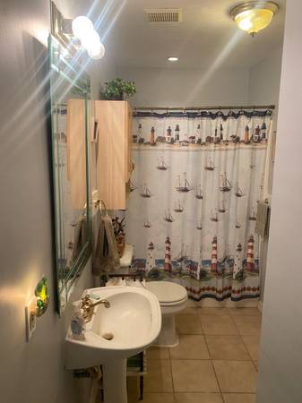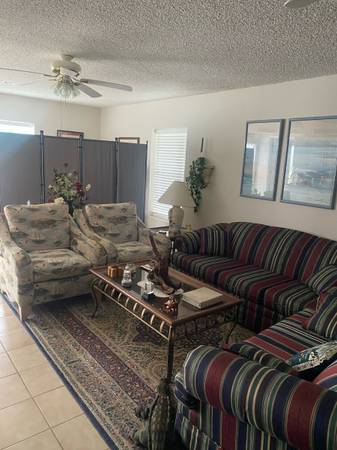 Beautiful shared home on Okaloosa Island. First floor 1100 sq/ft rental, includes: bedroom, private bath. Shared living room, game room, and laundry is shared on first floor. Kitchen area and upstairs living is shared space as well. Private entrance and off street parking. Separate AC/Heat control. Electric and water are shared. Internet and WiFi included.