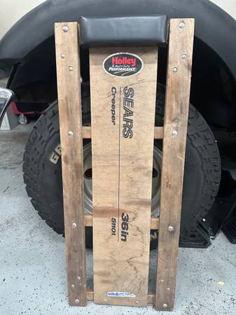 Vintage creeper. Still functional, but rolls as much as you'd expect from that wheel design. This is mainly just for hanging up on a wall for display in a garage. You can still use it, but that's...