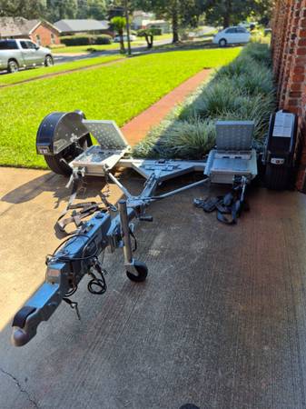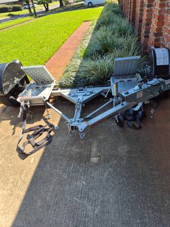 DEMCO Car Kaddy SS - Car Dolly, Disc Surge brakes, Galvanized frame, Tire Covers, Wheel straps, Tongue & ramps folds for storage. Used 3 times behind an RV. Paid $4500 new. Asking $3500.00 or OBO. The Kar Kaddy SS is foldable, has a steerable axle, hydraulic disc surge brakes. Can tow up to 4,800 lbs. Length is 133" extended and 67" with tongue folded and ramps stowed. Accommodates a wide range of tire tread widths (42" - 76"). Text: show contact info