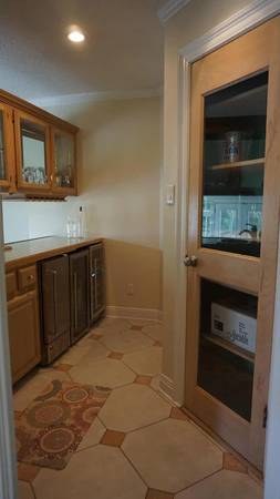 There are a few steps in the house. 2-3 steps inside to access the bedrooms and 3 steps to access the wet bar.