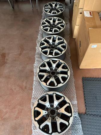 Set of 5 wheels from a 2023 Ford F150 Raptor. Only 2 years old and about 21,000 miles driven on them. Good condition minus some minor marks shown in the picture. Asking $1000 or best offer. Prefer to sell all 5 together but can sell 1 individually if needed.